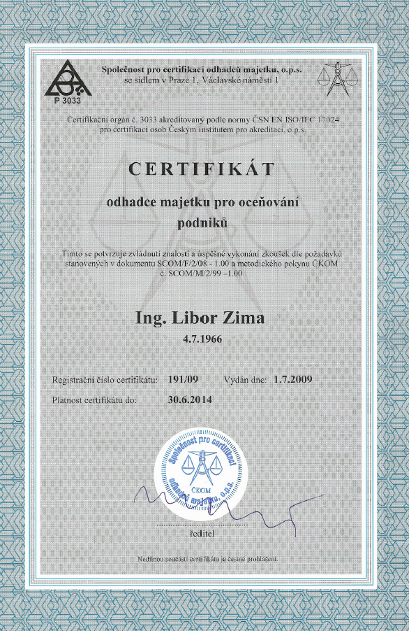 Jsem soudním znalcem v oboru oceňování nemovitostí již 12 let a v oboru oceňování podniků již 3 roky.